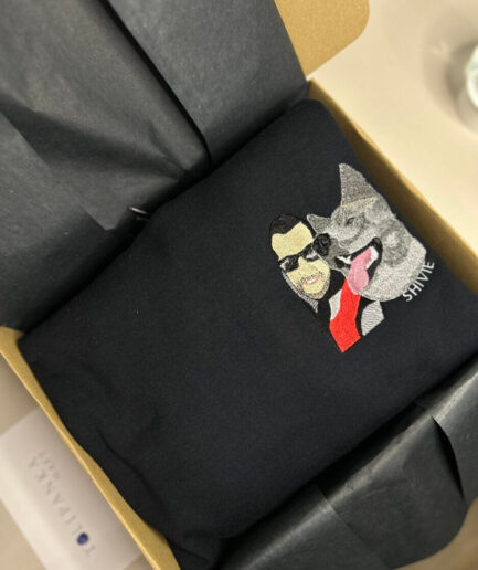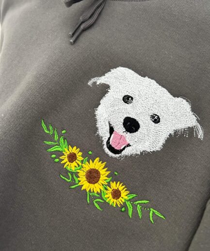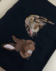Wyhaftowane osoby lub zwierzaki będą miały tak zwrócone twarze/pyszczki, taką mimikę jak na zdjęciu (np. jeśli zwierzak ma pyszczek skierowany w bok i nie widać jednej części pyszczka – projekt będzie również tak wyglądał) Jeśli na tym konkretnym zdjęciu, kolorystyka odbiega od rzeczywistości, prześlij więcej zdjęć, na których będziemy mogli się oprzeć.